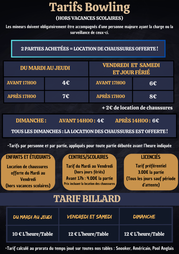 Pour une pause conviviale en famille, entre amis ou entre collègues, le bowling Van Gogh vous accueille du mardi au dimanche à Villeneuve d’Ascq non loin des villes de Lille et Roubaix.