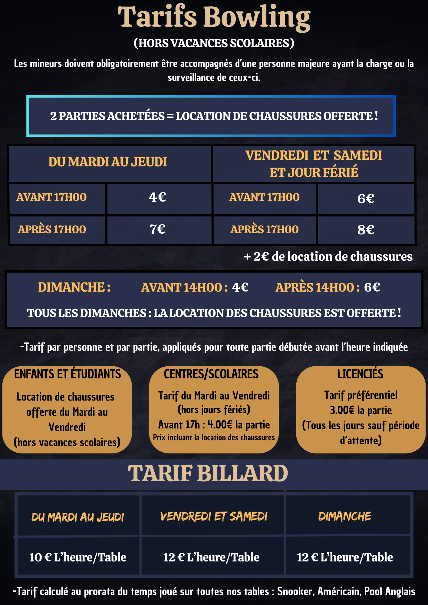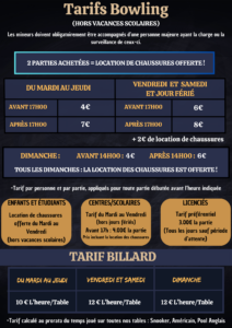 Tarifs Bowling